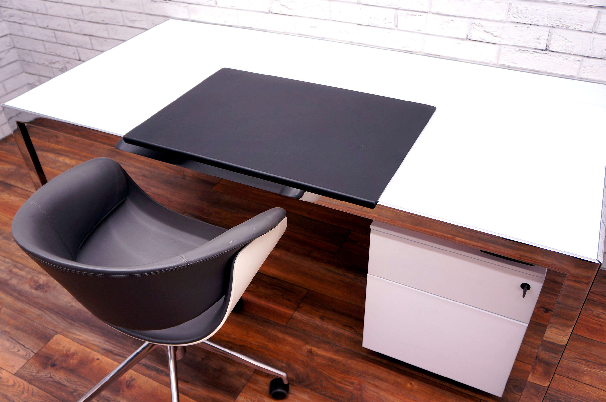 - Choosing refurbished office furniture, like this desk mat, is an eco-friendly decision. It helps reduce the carbon footprint by extending the lifecycle of products and minimizing the environmental impact associated with manufacturing new items.