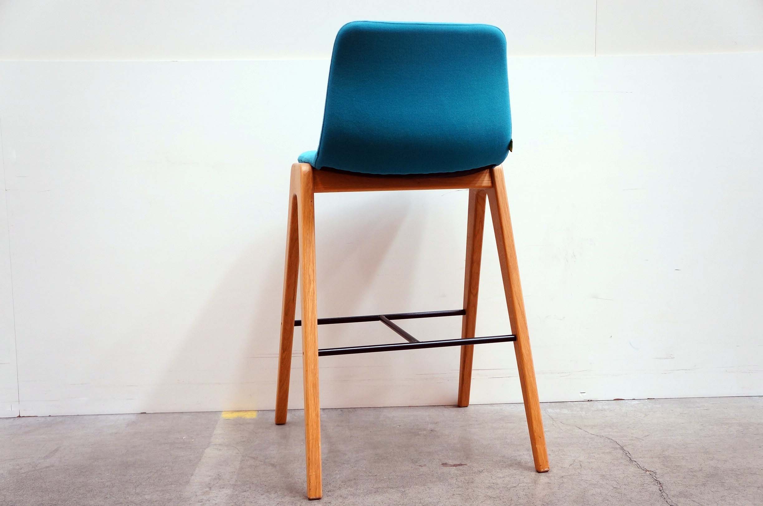 Naughtone Viv Bar Stool – Turquoise Seat – Wooden Legs
