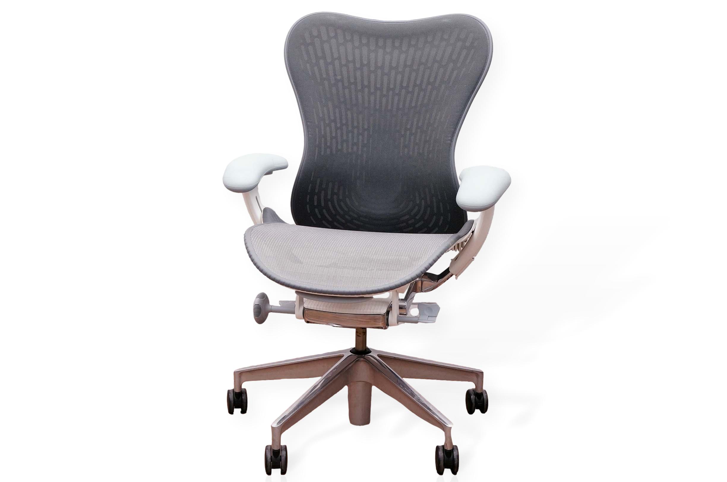 Herman Miller Mirra V2 Task Chair, Graphite Butterfly Back, Grey Mesh Seat, Studio White & Chrome Frame