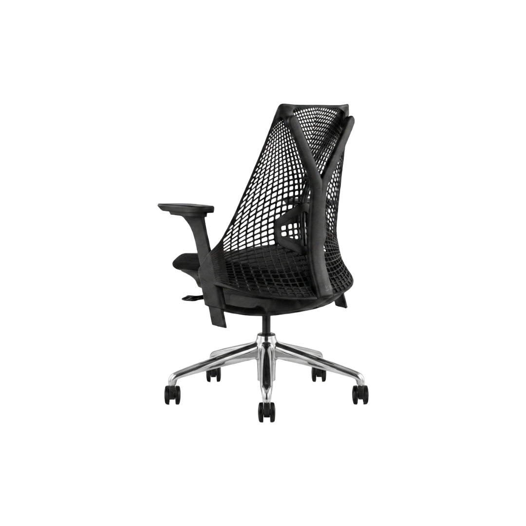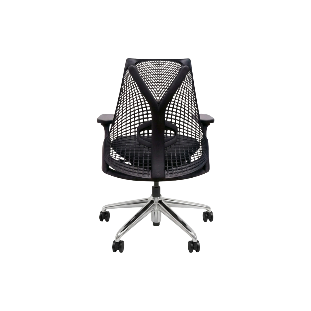 Herman Miller Sayl Task Chair, Black Mesh Back, Black Fabric Seat, Lumbar Support, 4D Black Arms, Black Frame, Chrome Base