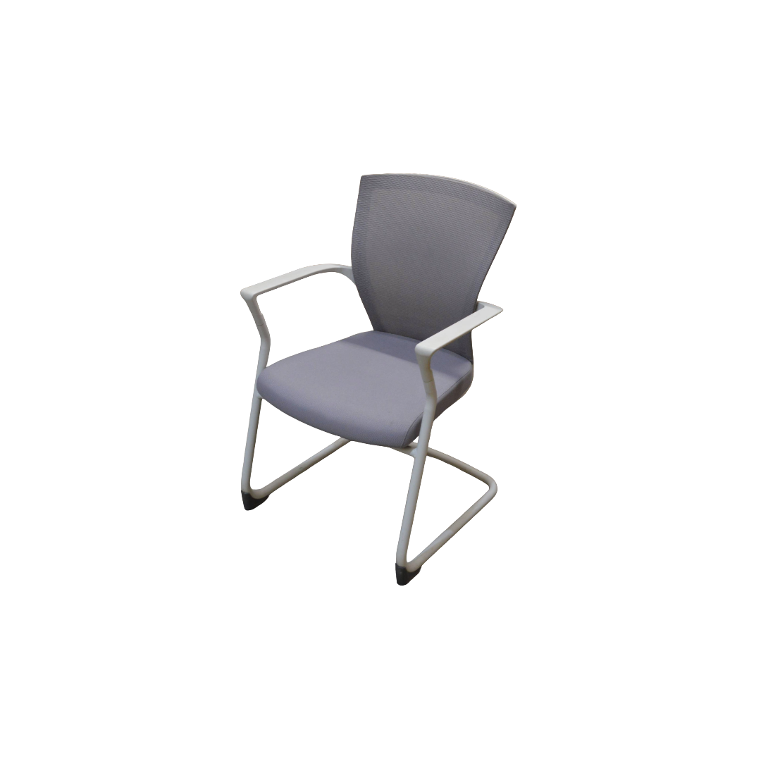 Bestuhl E1 Meeting Chair, Grey Mesh Back, Grey Fabric Seat, White Arms, White Cantilever Base