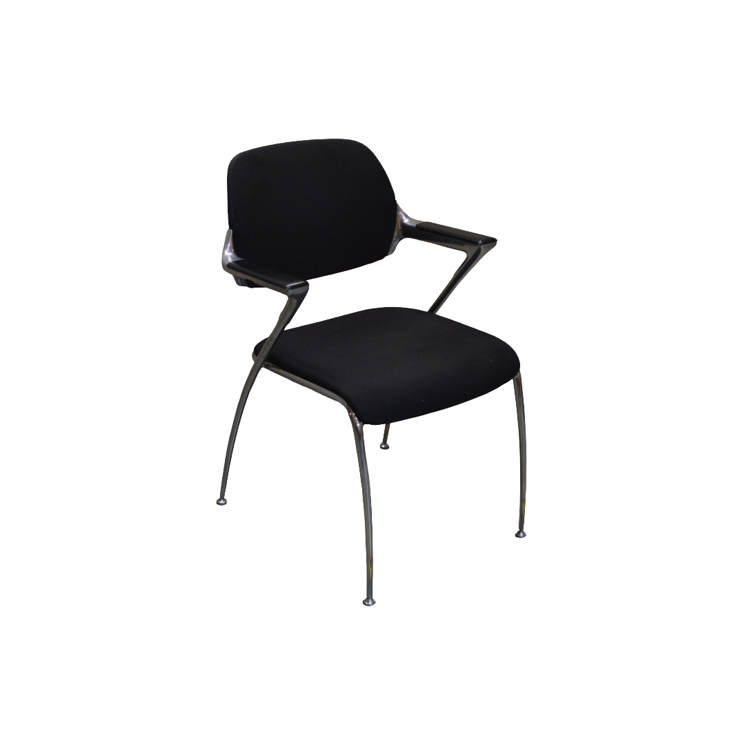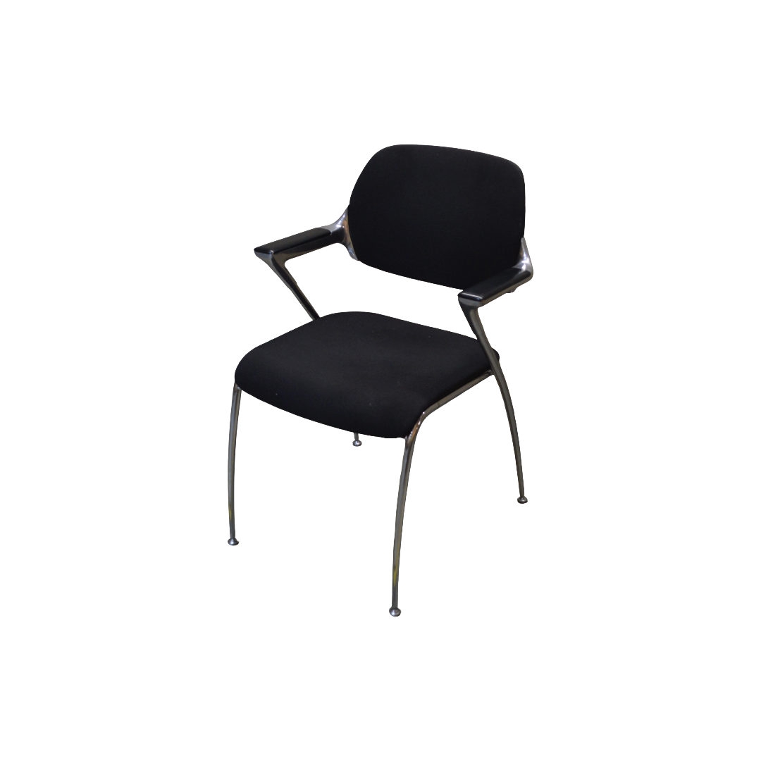 Brunner Golf Meeting Chair, Black Fabric Back & Seat, Black Wooden Arms, Chrome Legs