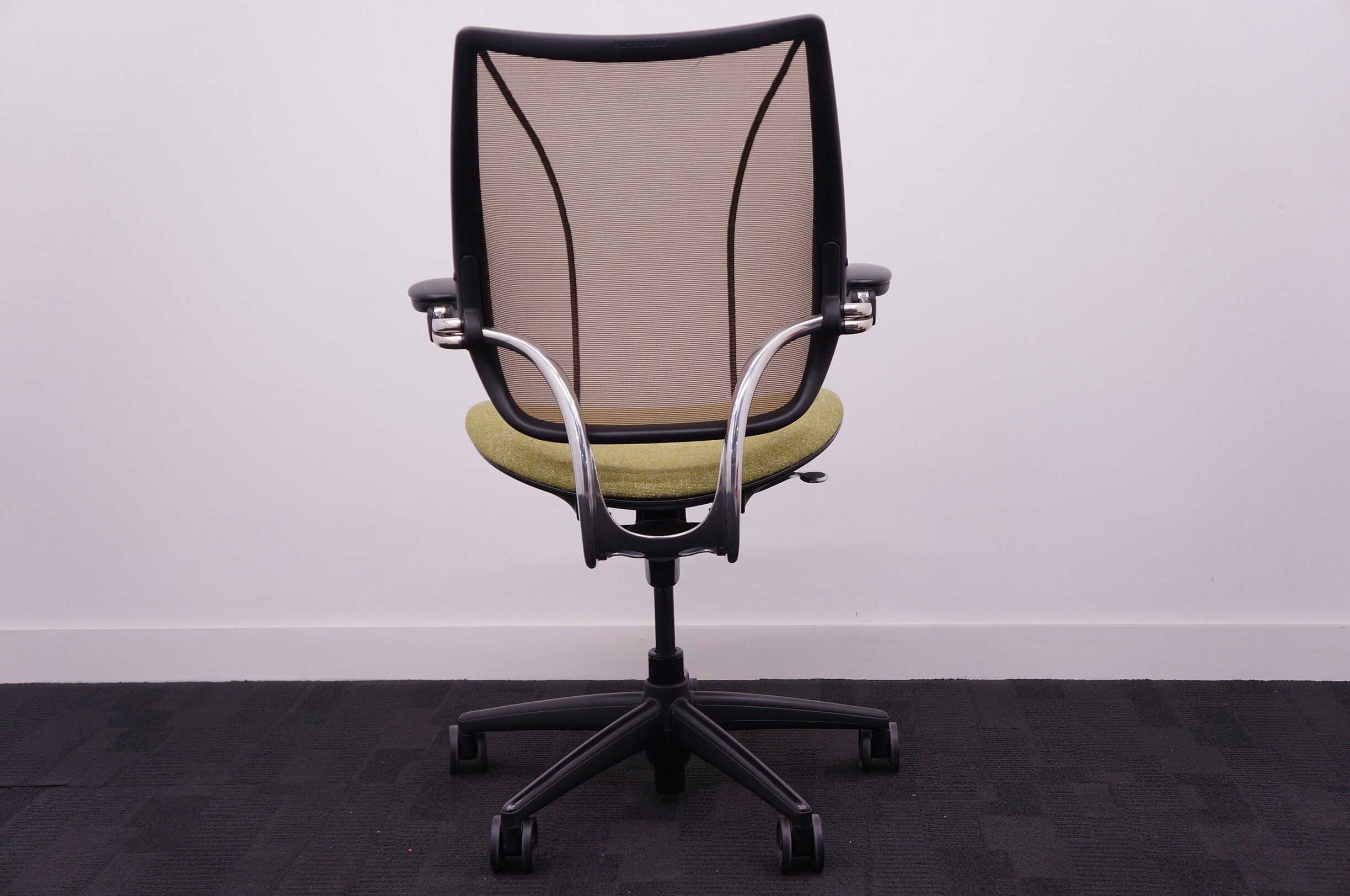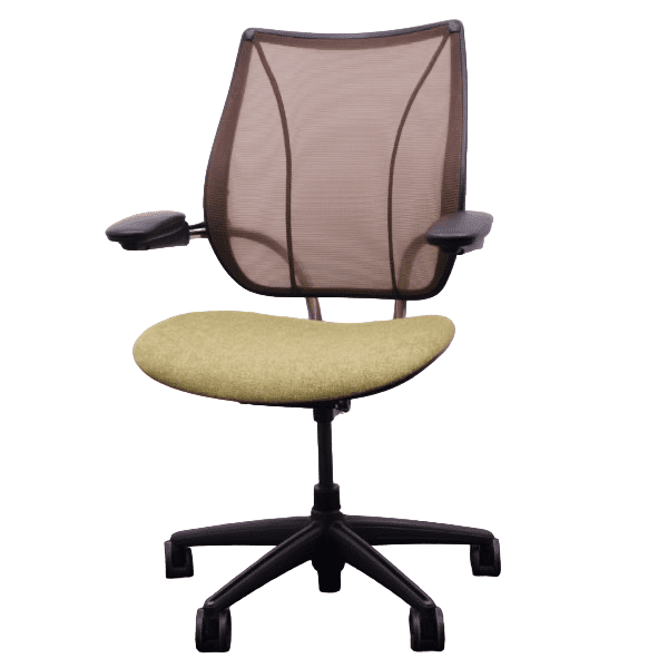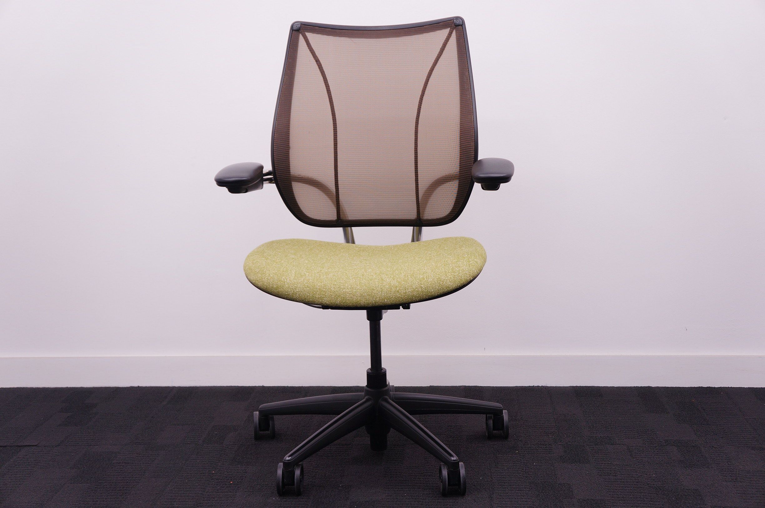 Humanscale Liberty Task Chair, Orange Mesh Back, Olive Green Seat, Black Frame & Base