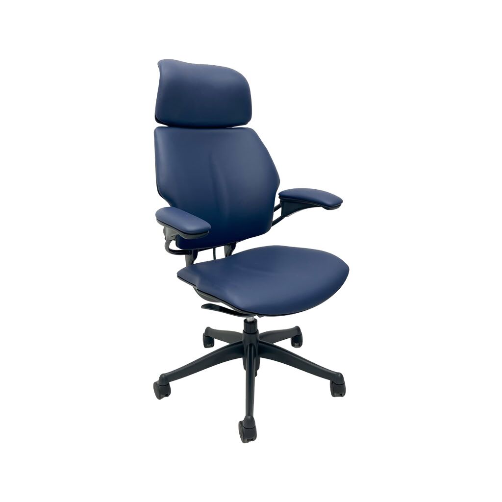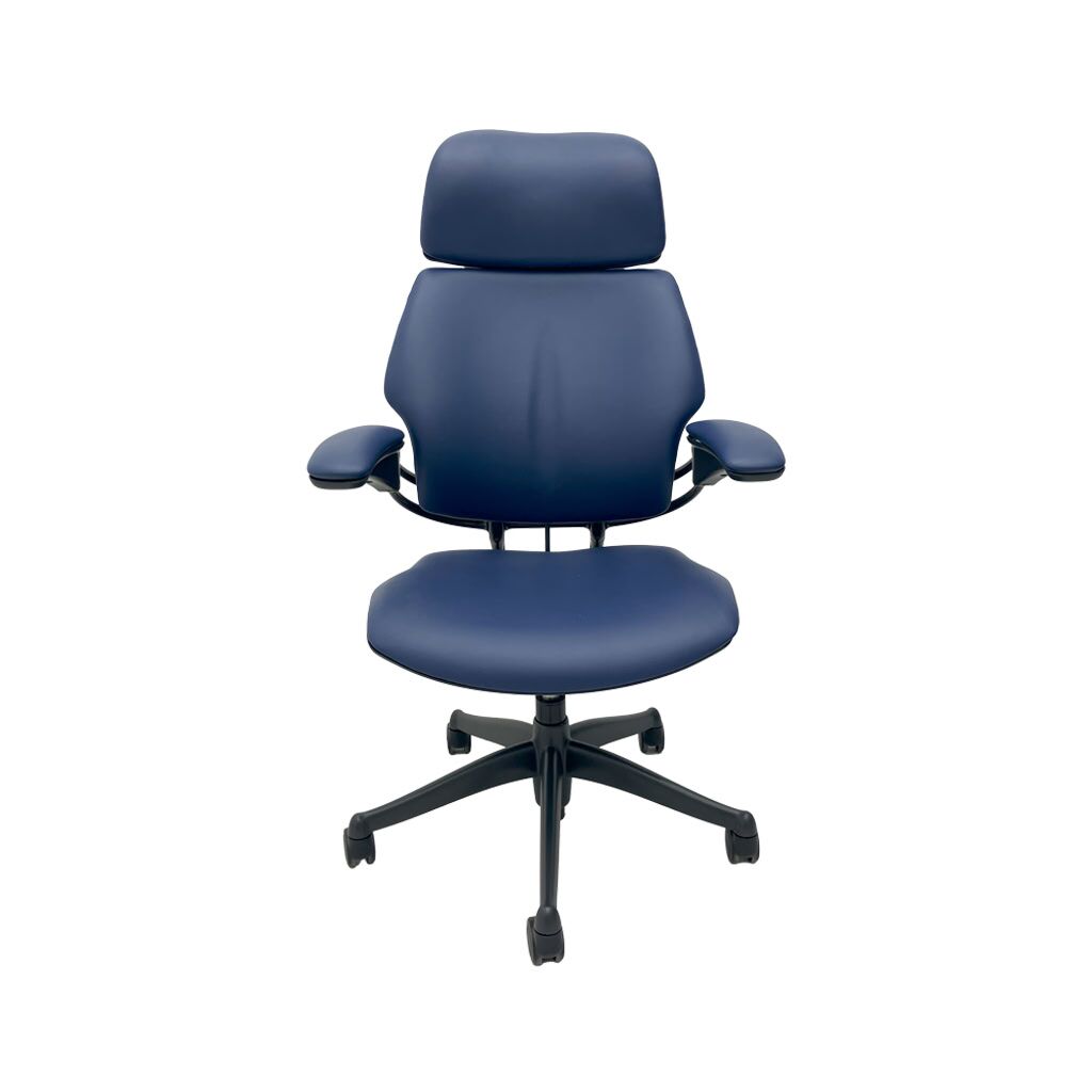 Humanscale Freedom Task Chair, High Back, Navy Blue Vinyl Back & Seat, Graphite Frame & Base