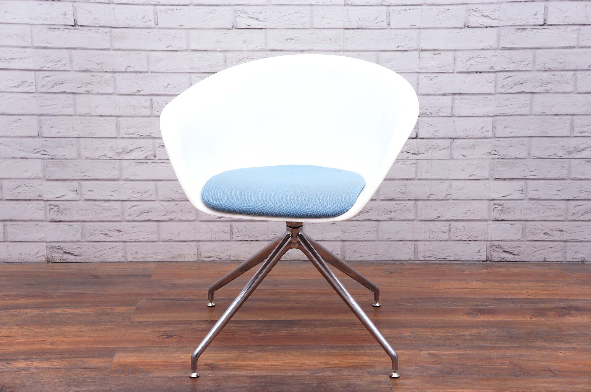 Arper Duna 02 Trestle Swivel Chair In White & Blue