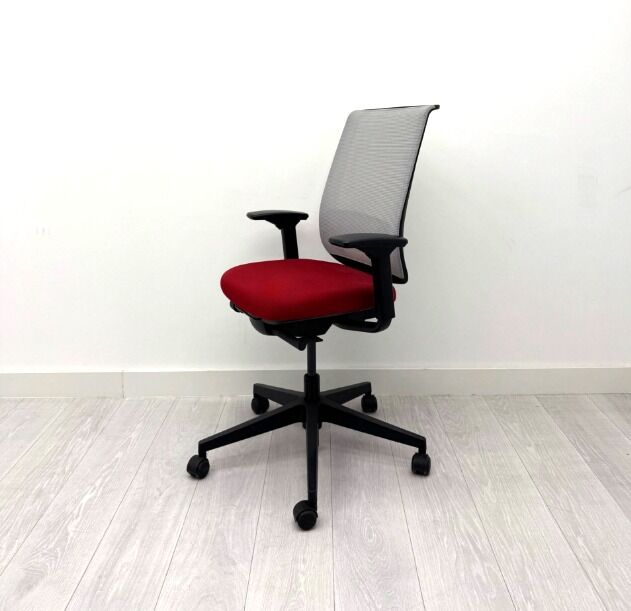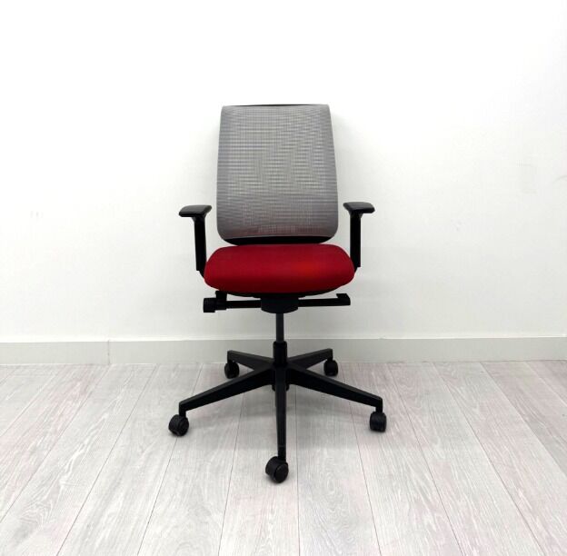 Steelcase Reply Task Chair With Grey Mesh, Red Cushion and Black Base and Frame