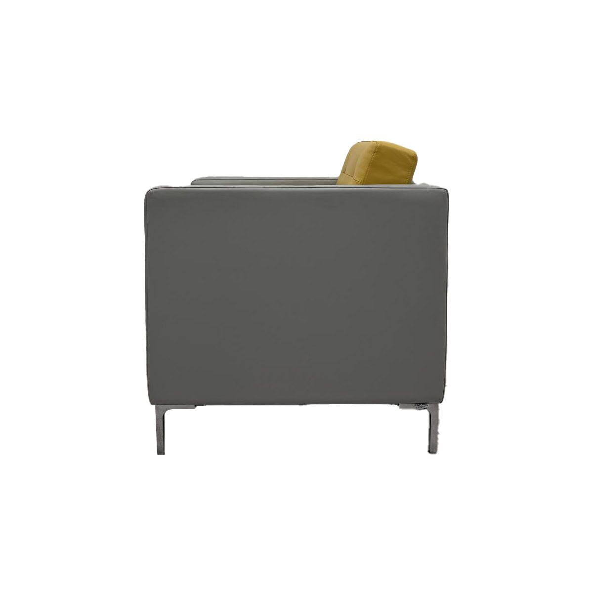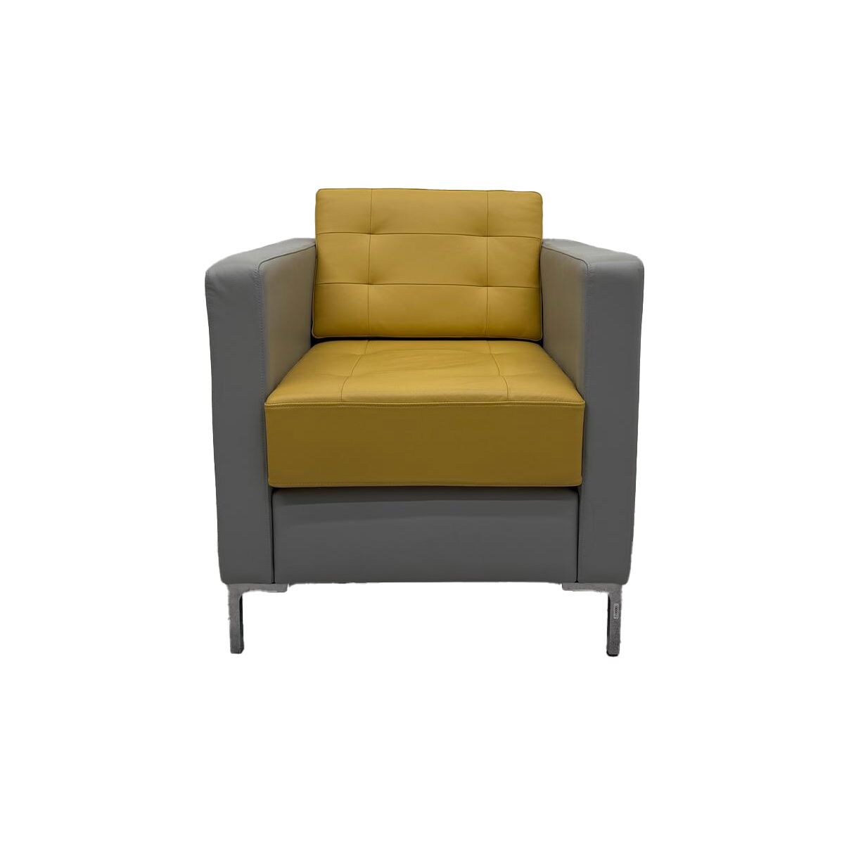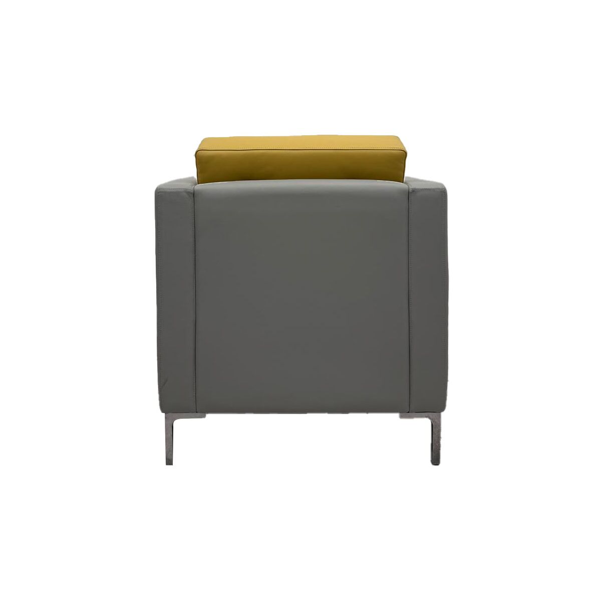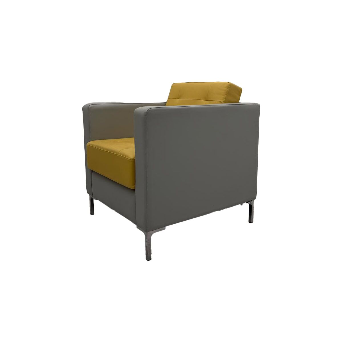 - Color Combination: Yellow seat cushion and backrest, grey armrests and base.