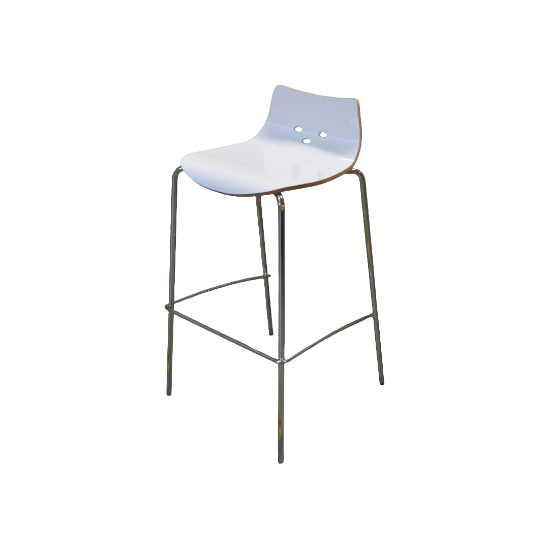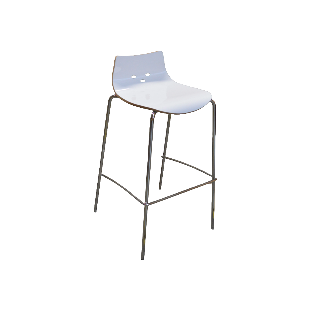 Broadstock Bar Stool, White Seat, Chrome Base