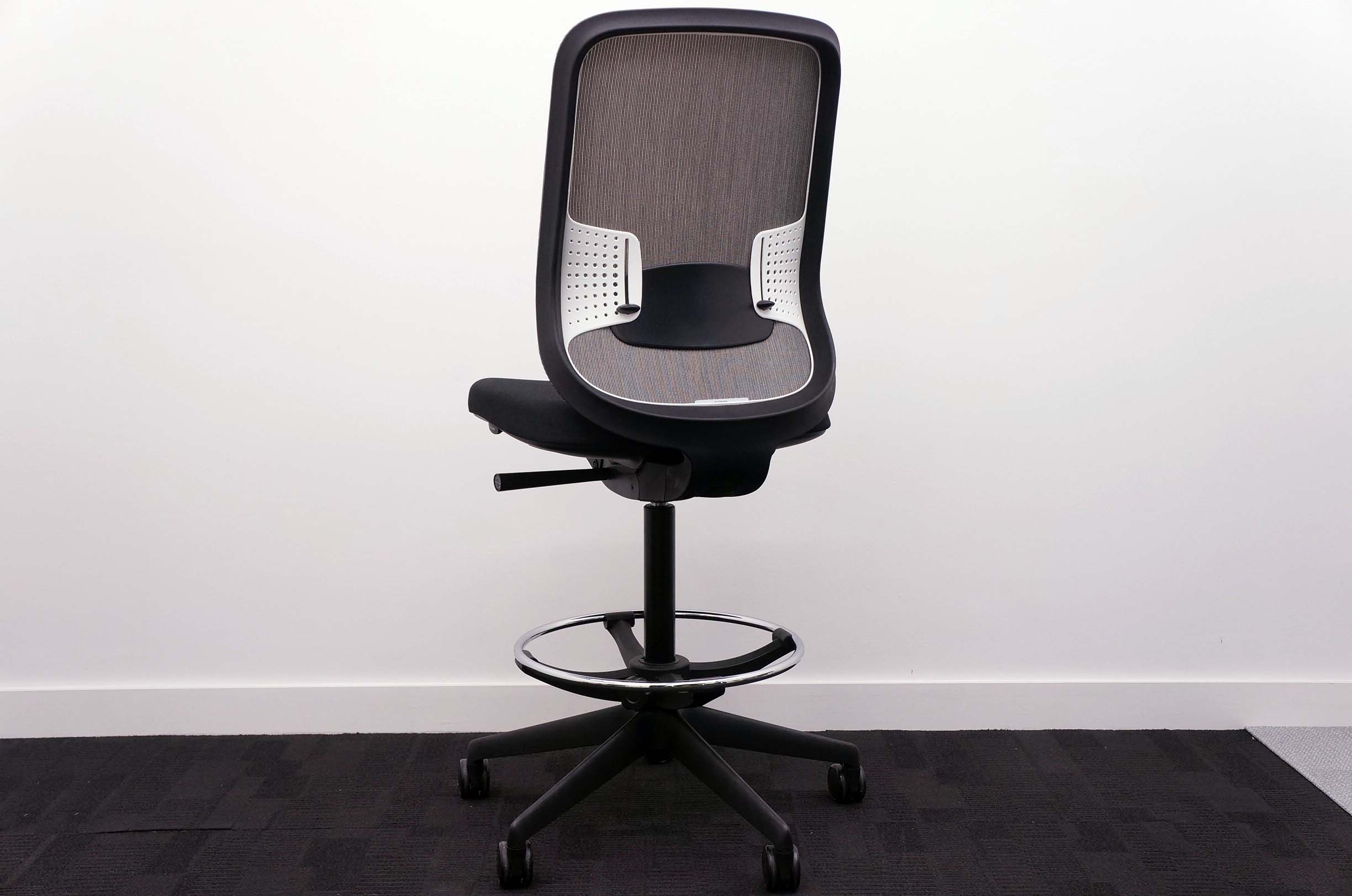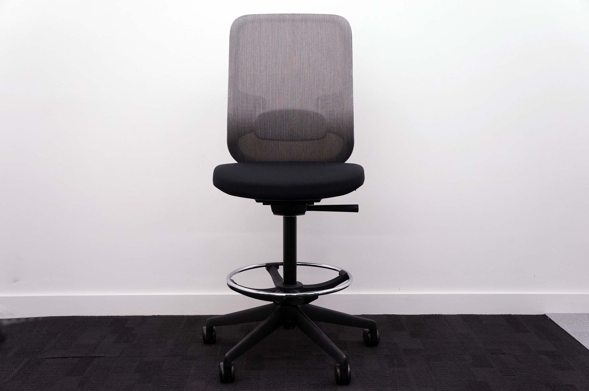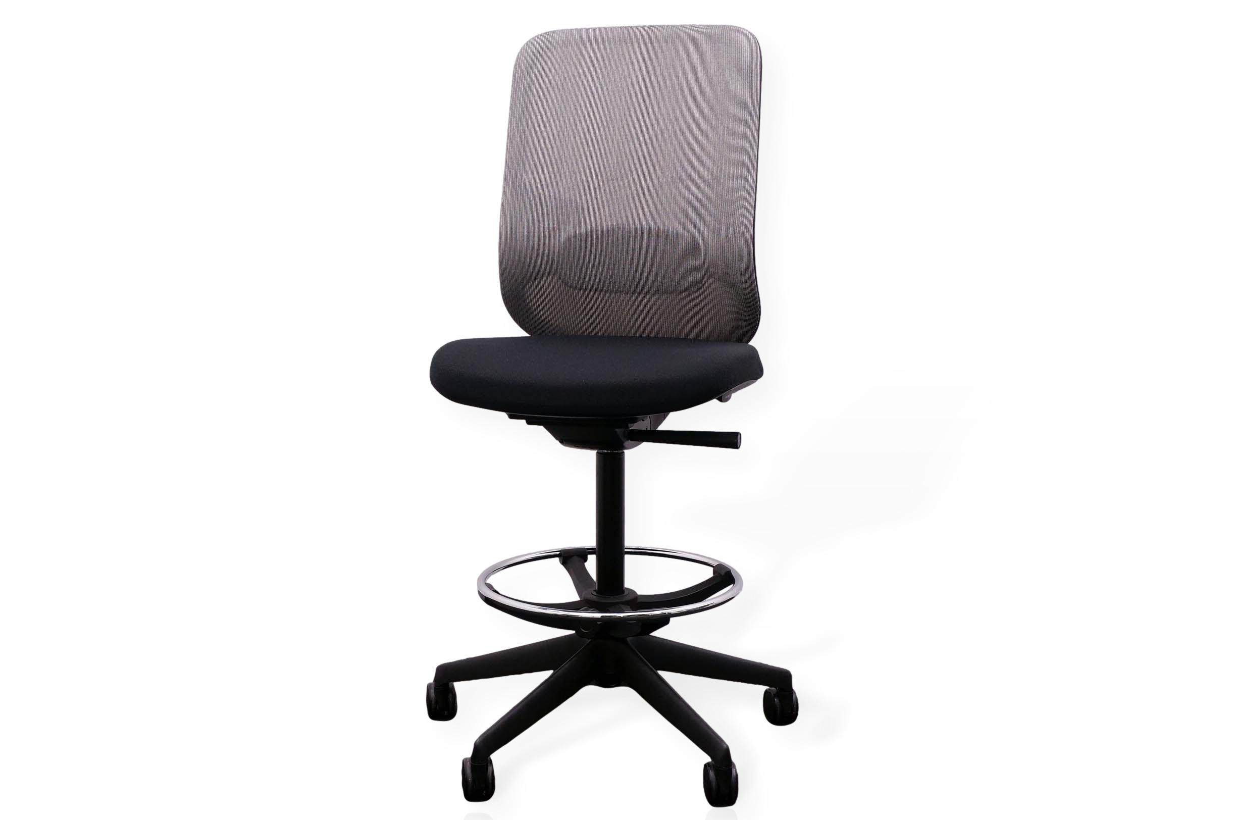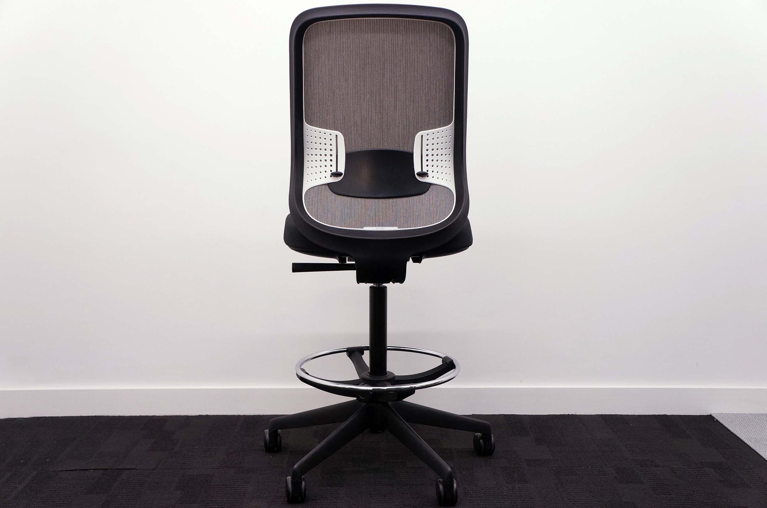 Orangebox Do Draughtsman Chair, Grey Mesh Back, Black Fabric Seat, No Arms, Black & White Frame, Black Base