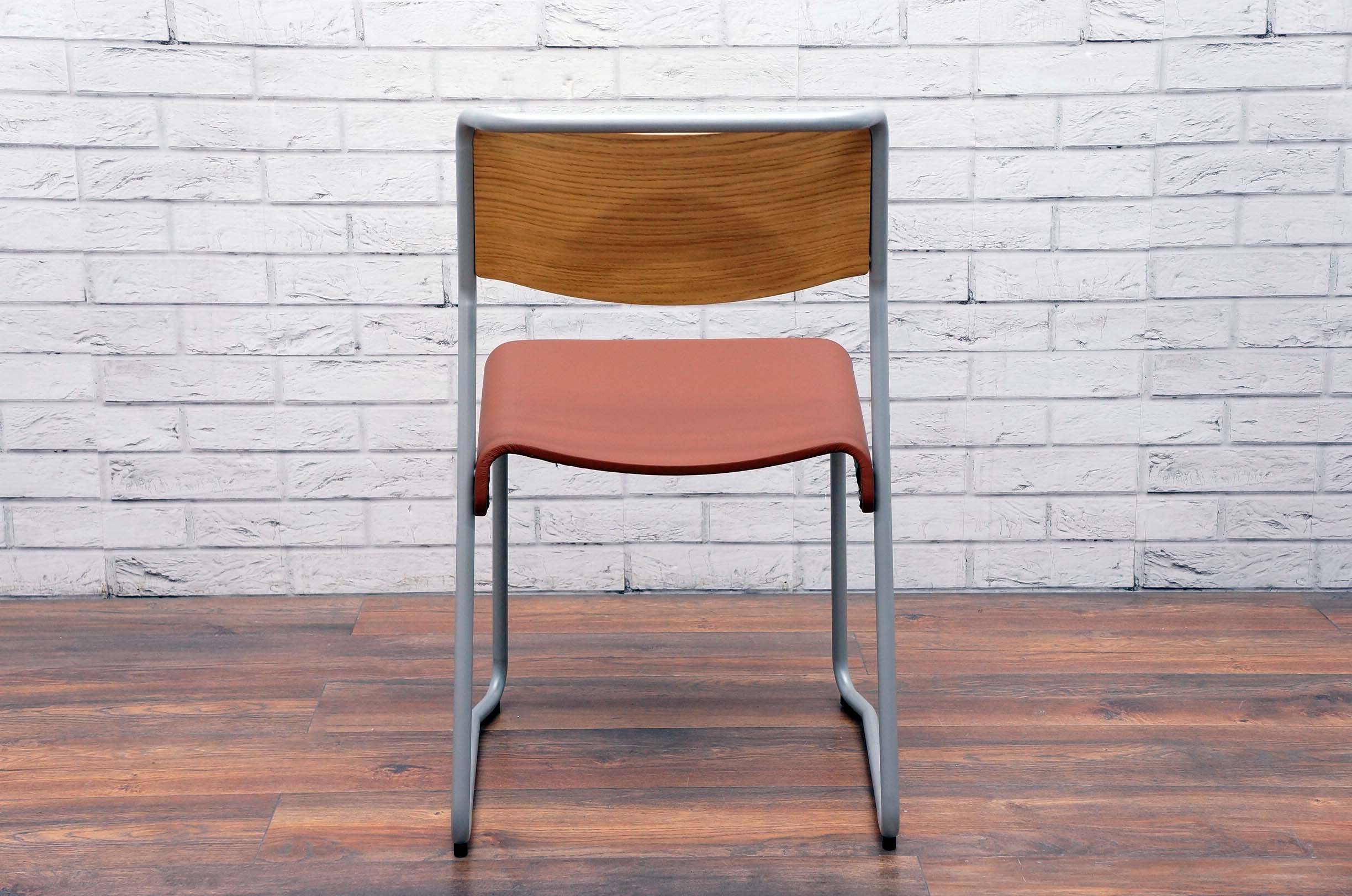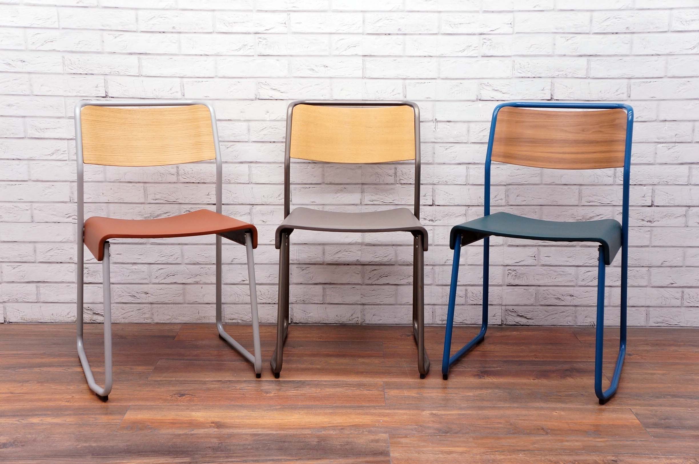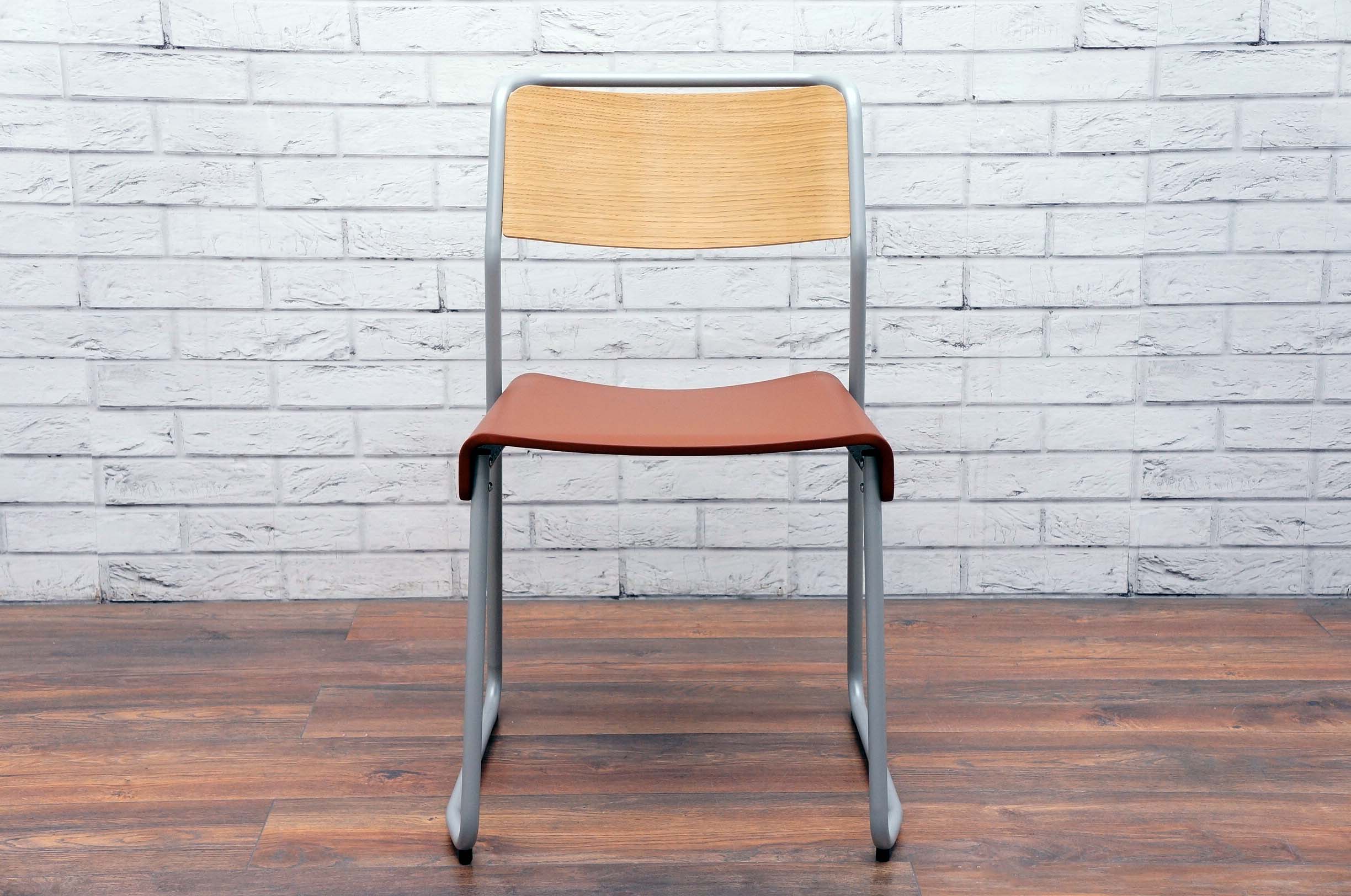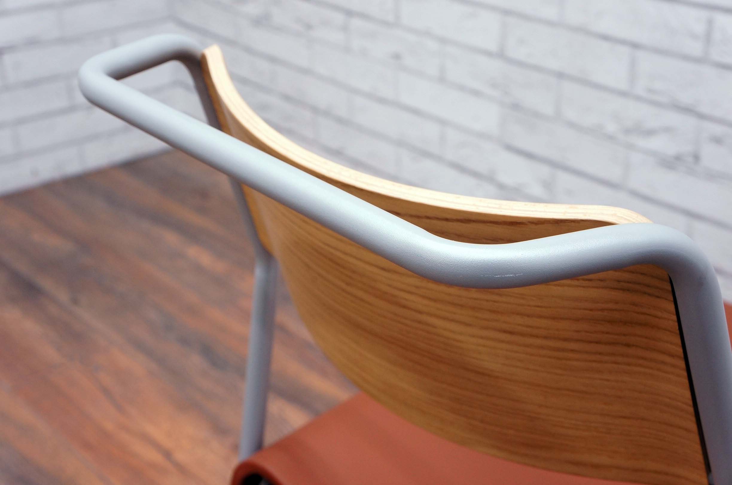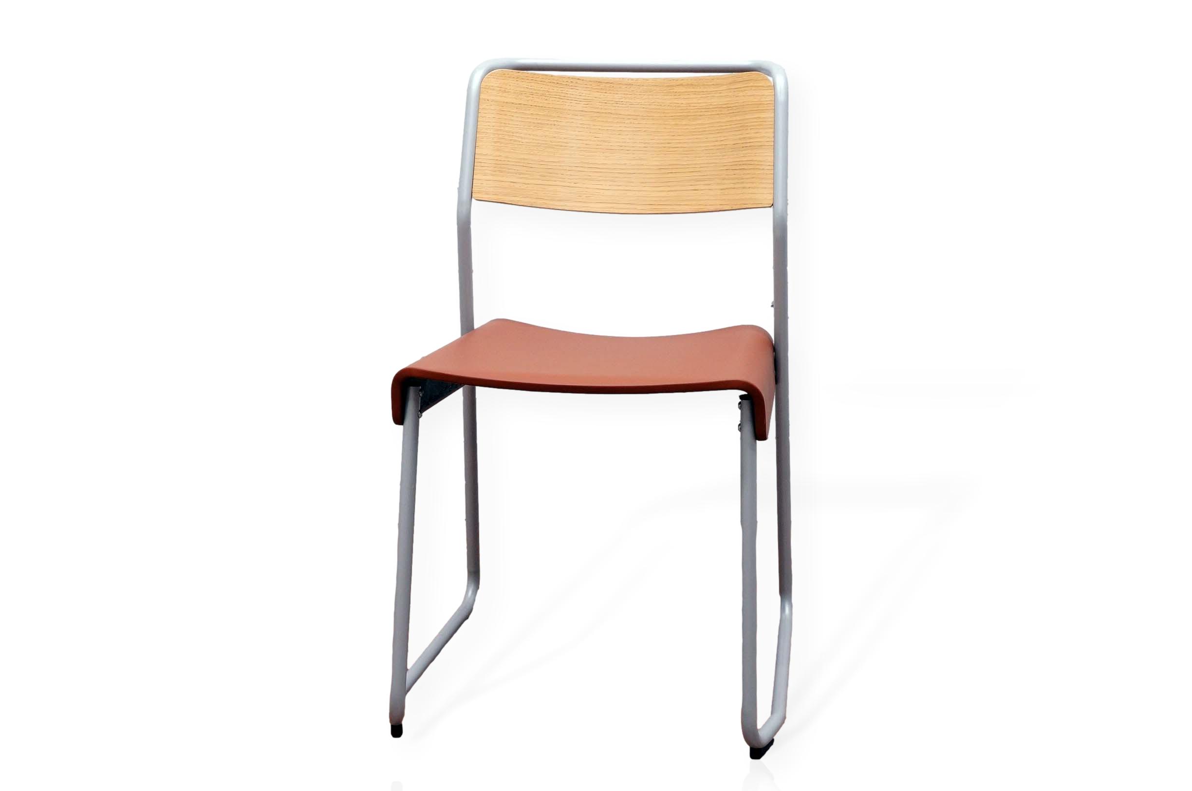 VG&P Utility Canteen Chair, Oak Back, Brown Seat, Grey Frame