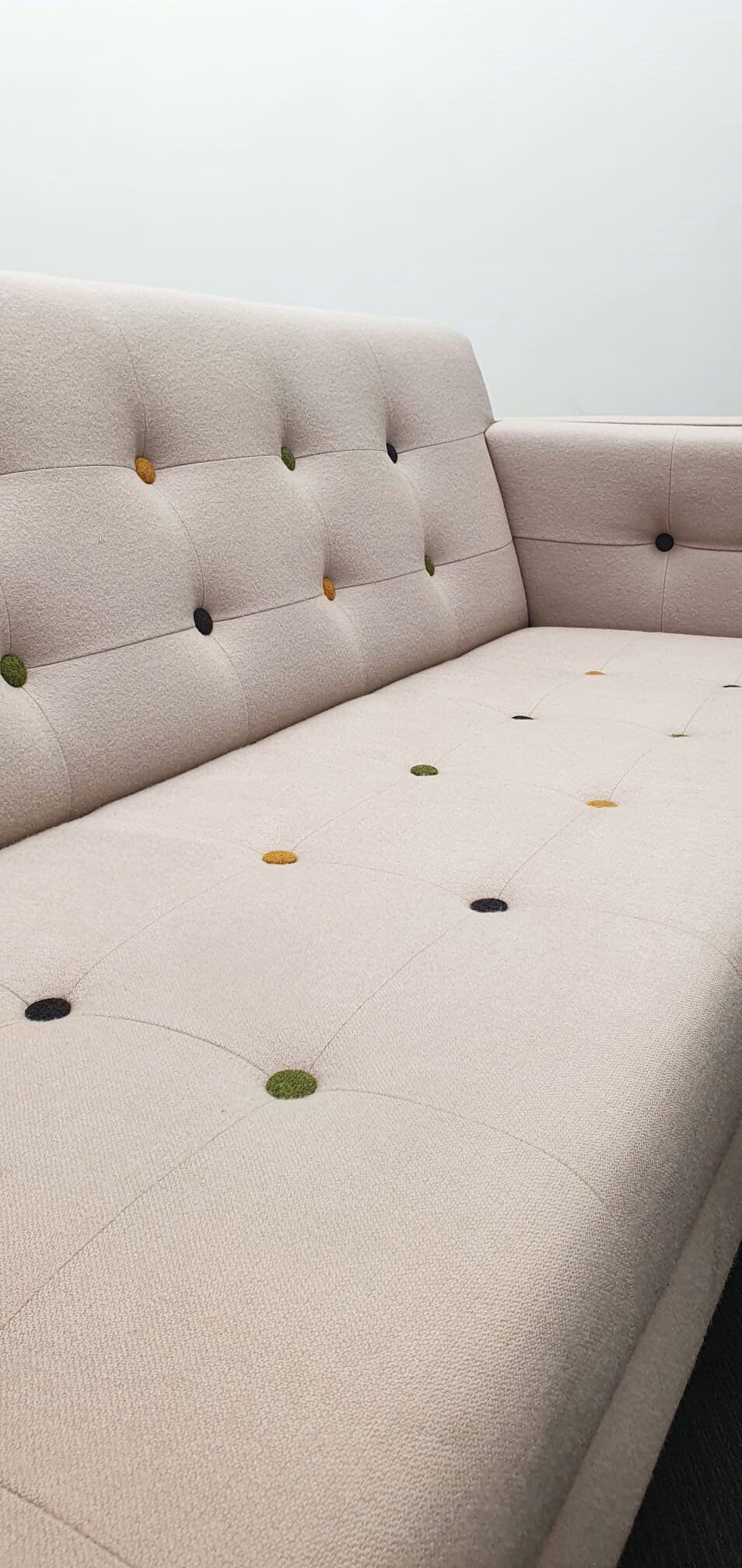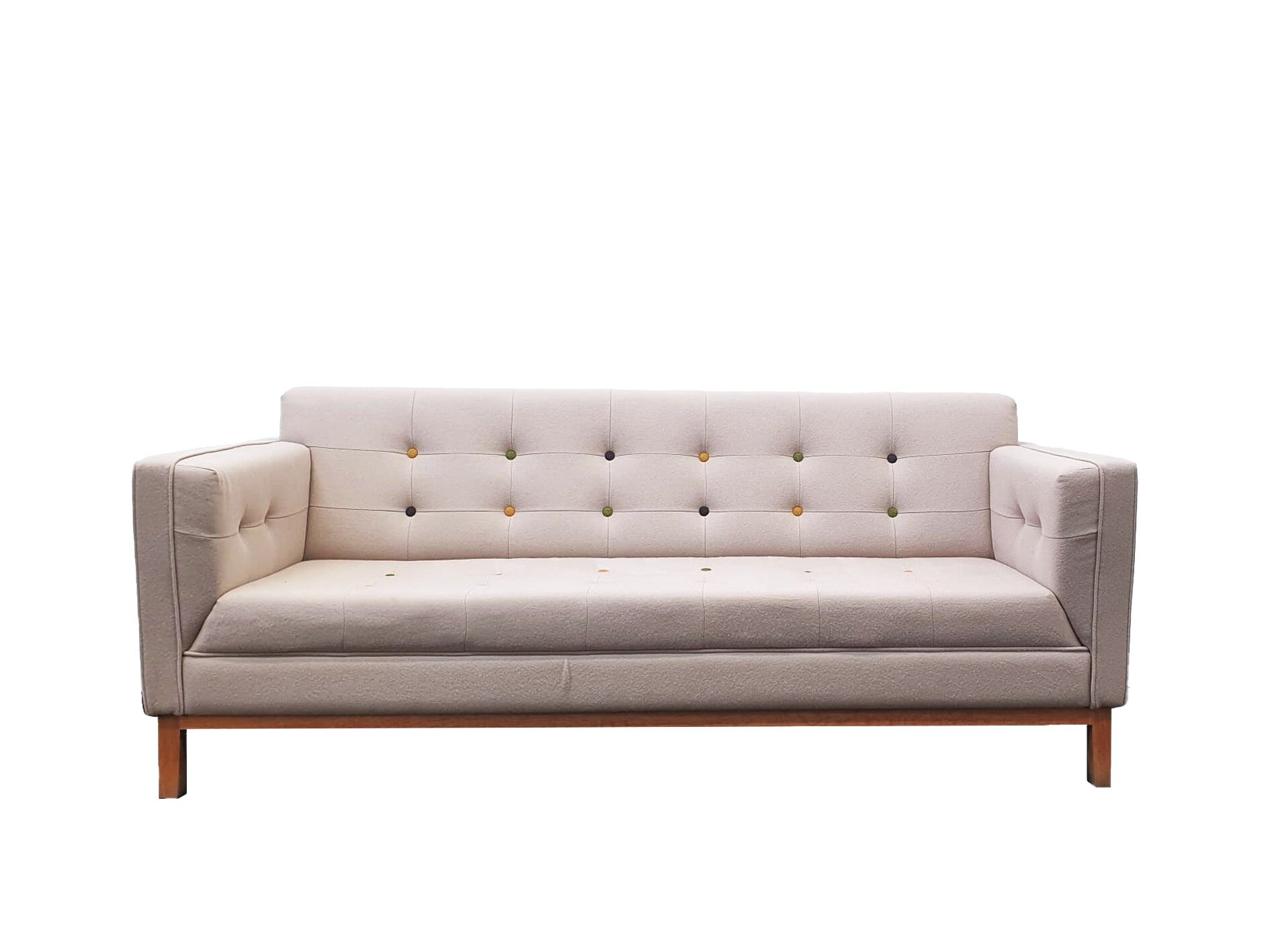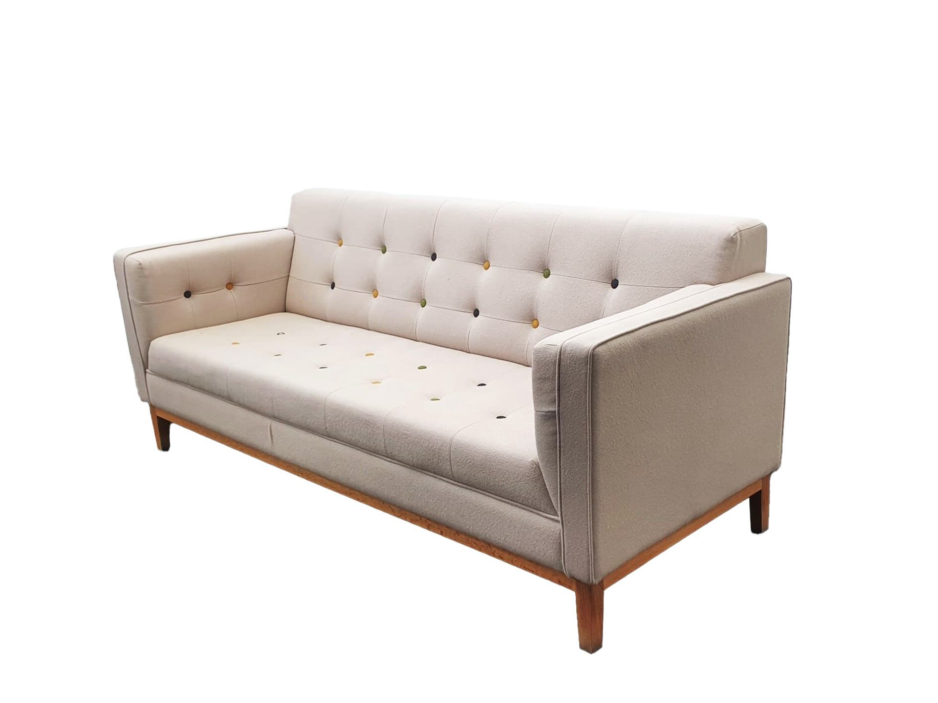 Frovi Jig Sofa, 3 Seater, Cream Button Back & Seat, Oak Legs
